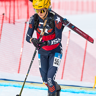 Name: Hali Hafeman Age: 33 Home Town: Evergreen, Colorado Home Club/Team: N/A Sponsors: N/A Racing Accomplishments: 2025: Nationals – 1st place Vertical & Mixed Relay; 2024: Nationals – 1st place Sprint & Vertical and 11th place at first World Cup Vertical in Andorra Favorite US Skimo Race;Wasatch Powderkeg & Vertfest...